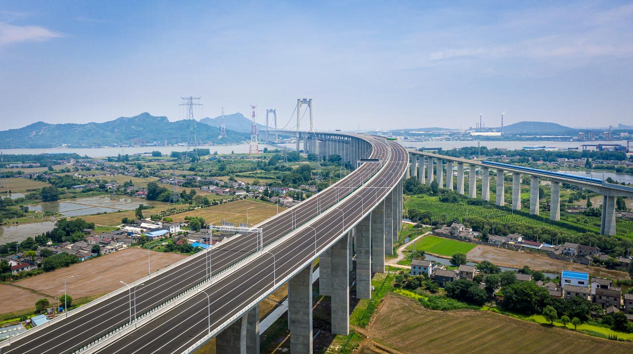 首创超千米跨度高速铁路悬索桥合理结构体系与关键结构设计。大桥按照4线铁路+8车道高速公路标准设计,为世界上公路铁路车道数最多、荷载重量最大的铁路悬索桥,荷载重量为国外已建最大铁路悬索桥的2.54倍;与国外悬索桥铁路桥面多采用纵横梁明桥面结构体系不同,首创板桁结合新型钢桁梁整体桥面悬索桥有砟轨道结构体系,为世界上首座采用板桁结合新型加劲梁结构的公铁两用悬索桥,精准把握“刚”“柔”平衡点,解决了大跨柔性悬索桥结构制约列车高速安全平稳运行的技术难题;单根主缆设计内力8.9万t,主缆直径达1.3m,为目前世界上最大直径主缆,创新采用超大直径主缆体系,形成重载铁路主缆承重体系耐久使用技术;首次在铁路道砟桥面采用轧制不锈钢复合钢板新材料,解决了长期困惑铁路桥面列车停运的养护技术难题;首次在正交异性板U肋与顶板之间采用全熔透焊接技术,研发U肋双面埋弧全熔透焊接成套技术,有效缓解正交异性钢桥面板疲劳问题。