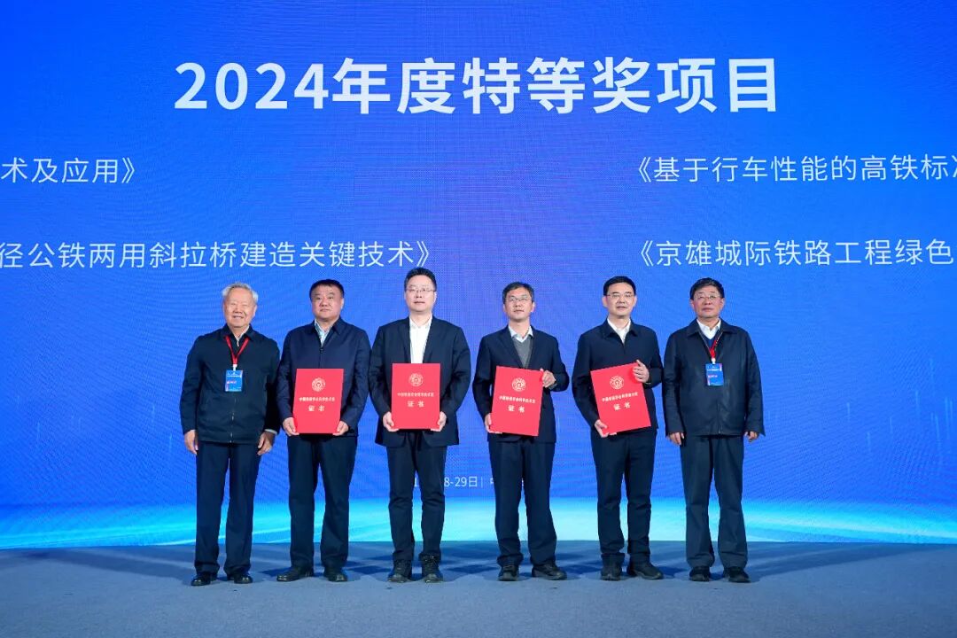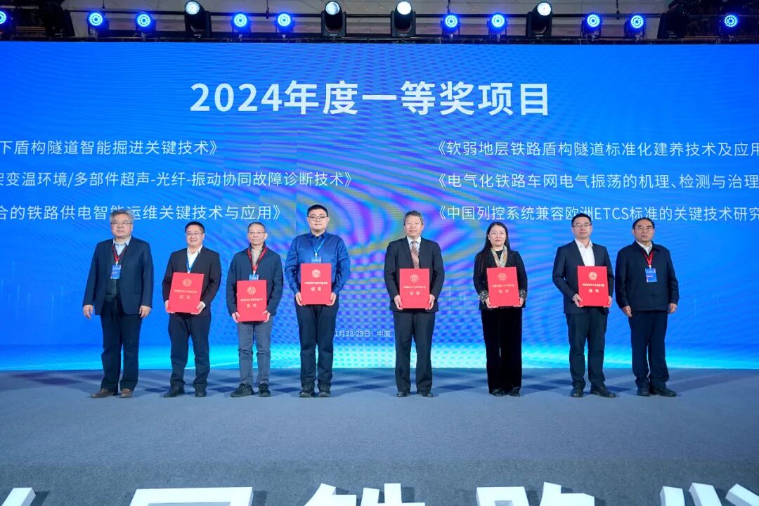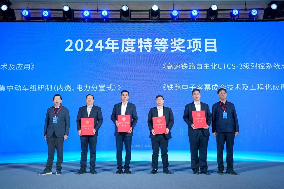 主论坛上,同期举行“2024年度中国铁道学会科学技术奖”颁奖仪式,共邀请8位特等奖和12位一等奖获奖项目代表出席。中国铁道学会科学技术奖是铁道行业最有影响、最具权威的科技奖项,这些获奖项目在中国铁路工程建设、智能高铁、装备制造等领域攻克一系列关键技术难题,实现重大技术创新,创造重大经济效益和社会效益,对铁路行业科技进步具有重要的引领和示范作用。
